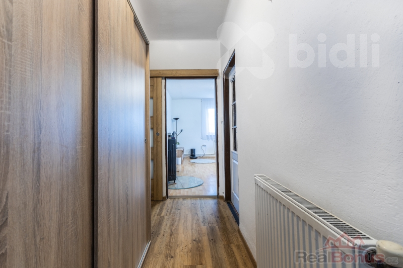 Při vstupu do domu vás přivítá prostorná předsíň, ze které se jde do chodby. Napravo se nachází koupelna a samostatné WC. Srdcem domu je obývací pokoj s krbovými kamny, které nejen příjemně zahřejí, ale zároveň vytváří útulnou atmosféru. Na obývací pokoj plynule navazuje kuchyně s prostornou spíží, kde můžete uskladnit i menší domácí spotřebiče.