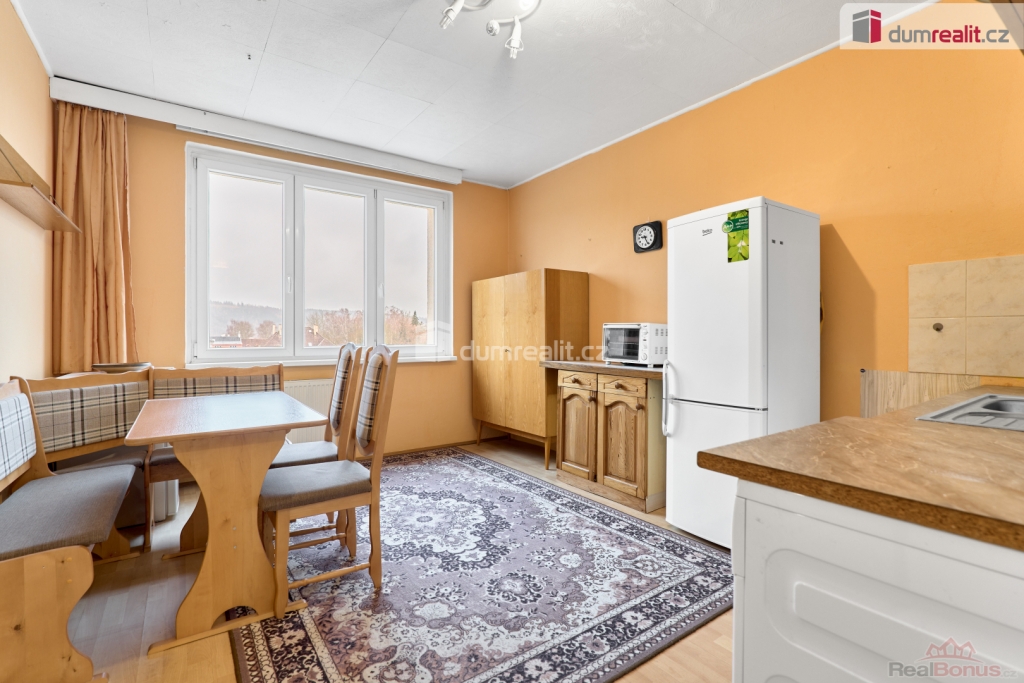 Cena vč. právních služeb a provize RK, Dumrealit.cz Vám zprostředkuje prodej slunného bytu 1+1 v Karlových Varech, ve velmi oblíbené lokalitě Rybáře. Bytová jednotka o celkové ploše 35 m (vč. sklepa) se nachází v 5. patře zatepleného panelového domu s výtahem z celkových sedmi. Byt má nová plastová okna vč. parapetů a tělesa radiátorů, jinak je v původním udržovaném stavu. K bytu samozřejmě náleží sklep. Dům je velmi čistý, udržovaný, zateplený a má nový výtah, bezpečnostní dveře, poštovní schránky a kamerový systém. Snadné parkování před domem. Díky ideální poloze domu máte veškerou občanskou vybavenost snadno a rychle dostupnou (dětská hřiště, školy, školky, obchody, lékař, zastávka MHD, autobusové a vlakové nádraží). Upravené cyklostezky, turistické trasy a nedaleké lyžařské areály vám umožní bohaté celoroční sportovní vyžití. Tento byt je skvělou investicí do vašeho bydlení v Karlových Varech. Součástí fotek je vizualizace možného budoucího zařízení bytu. Tuto nemovitost lze hradit hypotečním úvěrem, který Vám rádi pomůžeme vyřídit v našem hypotečním centru. Ev. číslo: 653236. Energetický štítek: C