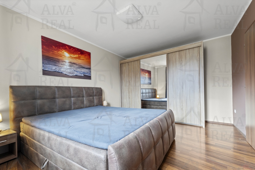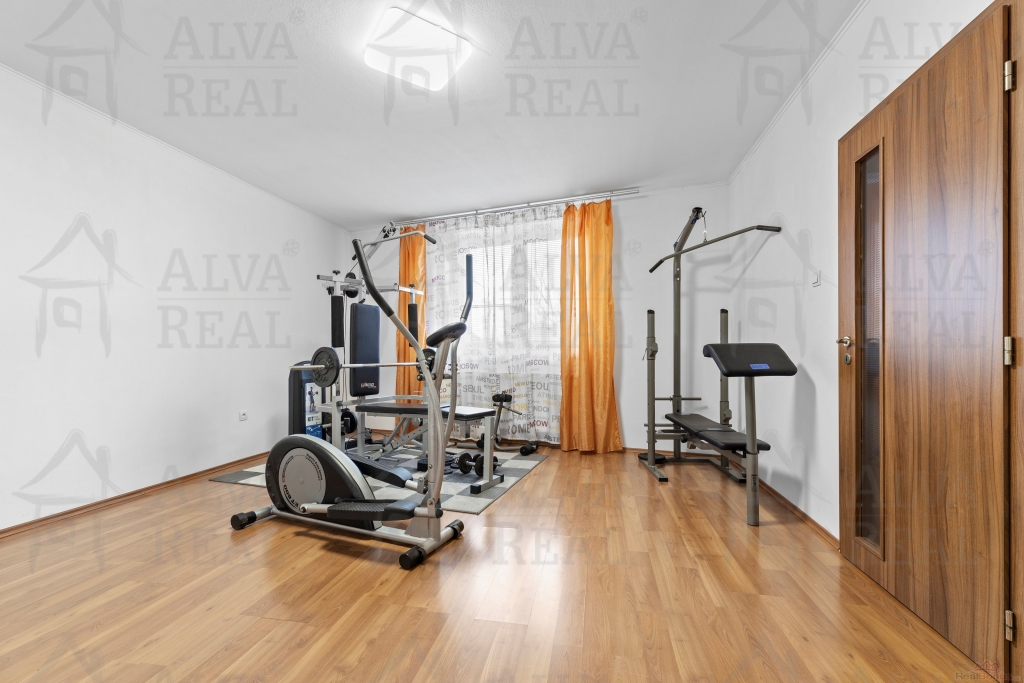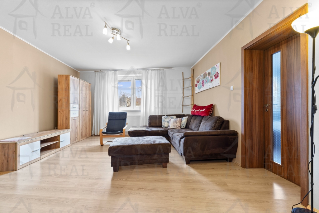 Vybavení: Kuchyňská linka včetně spotřebičů (el. trouba zn. Bosch, sklokeramická varná deska, digestoř Bosch, lednice LG), jídelna s dřevěným jídelním stolem a židlemi. V obývacím pokoji gauč s taburetem, obývací stěna. Ložnice vybavena manželskou postelí a šatní skříní. Prostorná koupelna s vanou i sprchovým koutem, koupelnový nábytek.