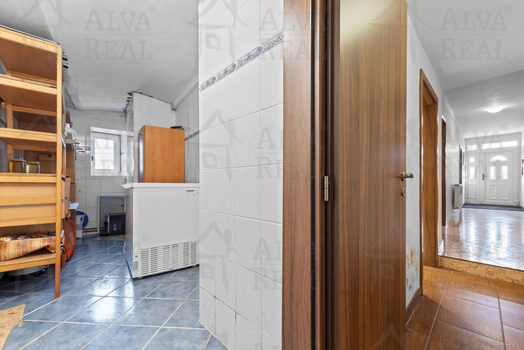 Dispozice: Obývací pokoj 22,17 m?; kuchyň 10,8 m?; jídelna 11,8 m?; ložnice 15,49 m?; pokoj 21,5 m?; pokoj 11,7 m?; koupelna 9,4 m?; komora 6,32 m?; WC 1,32 m?; kotelna 5,08 m?; chodba 11,68 m?; chodba 11,97 m?; zádveří 4,05 m?.
