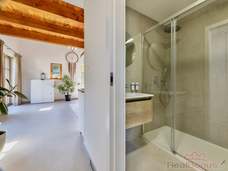Hlavními přednostmi této nemovitosti jsou dva vkusně zrekonstruované domy, absolutní klid, čistá příroda i vzduch, zahrada i lesy, přírodní koupání a velký potenciál pro rozšíření za účelem podnikání.