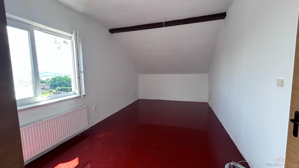 Vyšší stropy v jedné z místností umožňují případnou dispoziční úpravu, která může v budoucnu zvýšit užitnou i tržní hodnotu nemovitosti.