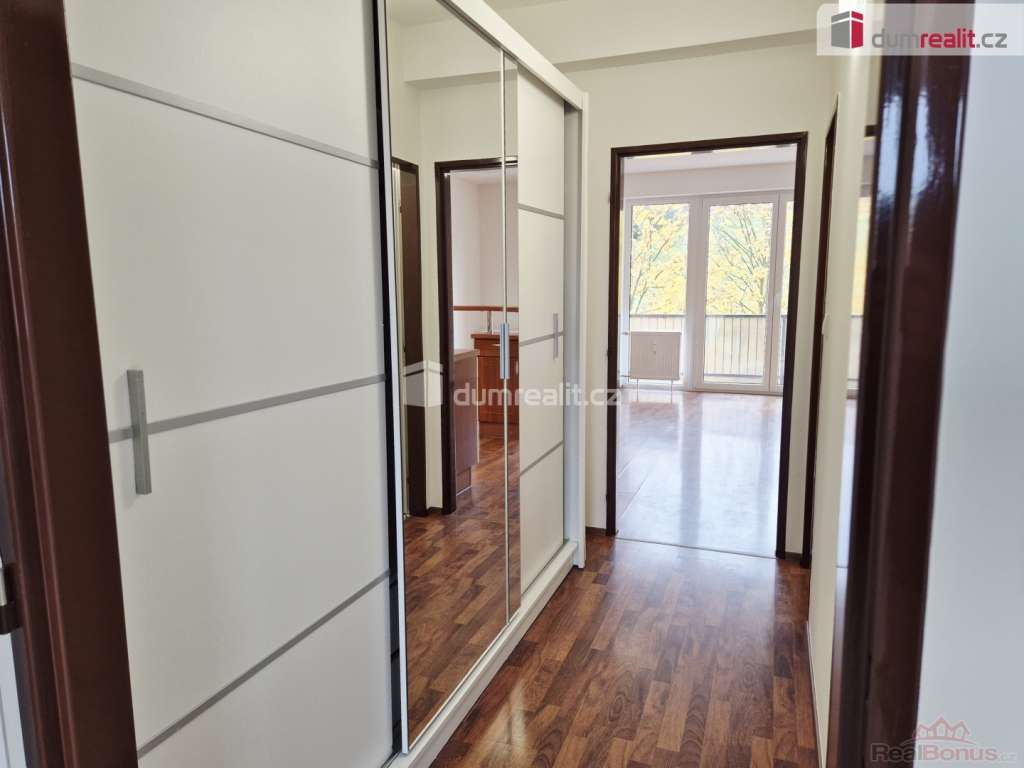 Nadstandardní byt prošel v nedávné době kompletní revitalizací a nabízí se k pronájmu bez vybavení/nábytku. Sestává ze zádveří, obýváku o 24,4 m s moderní kuchyňskou linkou s dostatkem prostoru pro jídelní stůl a s přístupem na balkon o cca 4,2 m, úplně nové koupelny se sprchovým koutem, umyvadlem s místem pro pračku, chodby s vestavěnou skříní a ložnice o o cca 12,5 m.