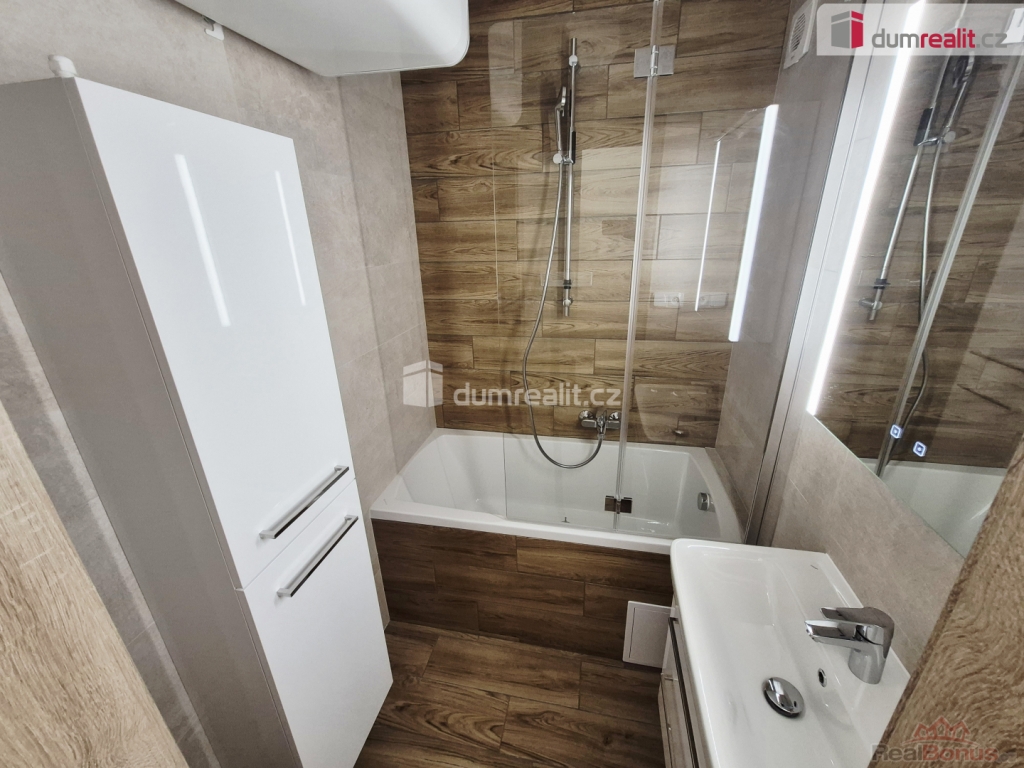 Koupelna je vybavena bojlerem a koupelnovým nábytkem, vanou se zástěnou pro možnost sprchování, toaleta je oddělena.