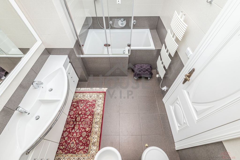 Dále jsou zde 2 ložnice, každá s vlastní toaletní místností, vybavenou sprchou a bidetem, a toaleta pro návštěvy.