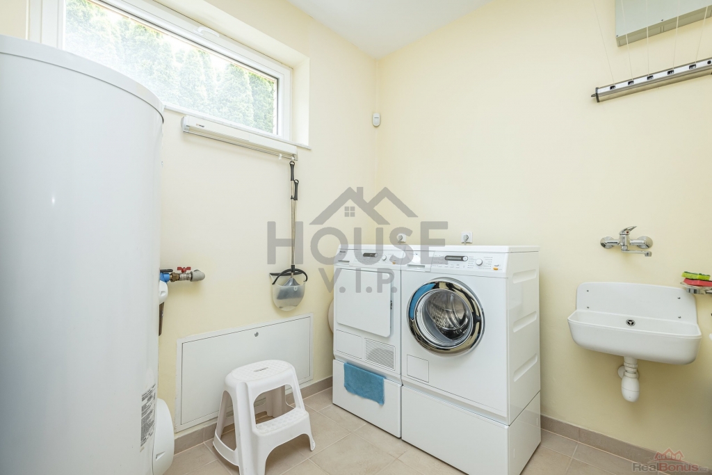 Dále se v patře nacházejí 2 velké zařízené ložnice, každá s vlastní koupelnou, a dobře vybavená pracovna s archivem, technické místnosti - žehlírna s úložnou skříní.