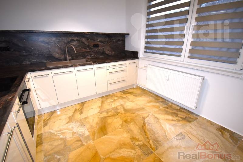Vstup do kuchyně, kde je kuchyňská linka na míru, digestoř a lednice,(myčka nádobí zde není). V kuchyni je dostatek prostoru pro velký jídelní stůl. V bytě je k dispozici drátové optické připojení k internetu. Zvonek na vstup do bytu, před domem je kamera, byt má bezpečnostní zámek. K bytu náleží vetší sklepní kóje. Byt je vytápěn plynovým kotlem pro celý dům s rozvody do ústředního topení.