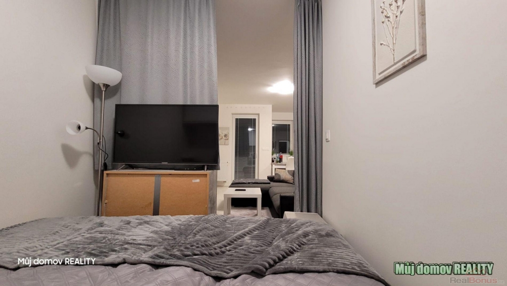 Dispozice bytu: vstupní chodba, moderní obývací pokoj s kuchyňskou linkou, ložnice,