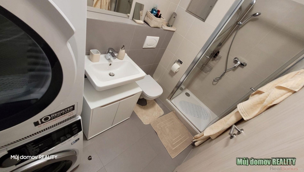 Byt je plně zařízený, součástí vybavení je pračka, sušička i dostatek úložného prostoru.