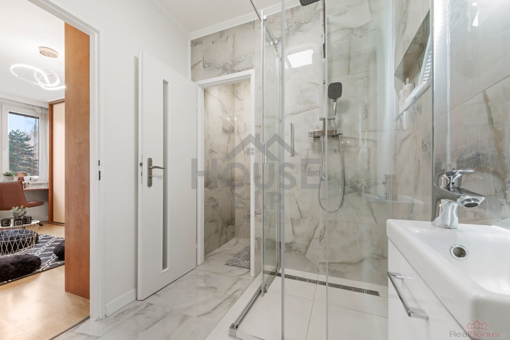 Byt nabízí další čtyři samostatné pokoje, z nichž každý může sloužit jako ložnice, dětský pokoj, pracovna či hobby místnost. Výhodou je také koupelna s vanou a druhá samostatná koupelna se sprchovým koutem a WC. Dostatek úložného prostoru je zajištěn na míru dělanými vestavěnými skříněmi takřka v každé místnosti. Vzhledem k přímému napojení druhé menší koupelny na jednu z ložnic, je byt možné snadno použít i pro dvougenereční bydlení.