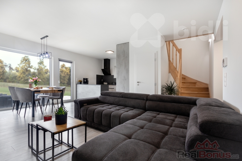 Tento dům dokonale spojuje moderní estetiku s praktickými potřebami rodiny, což z něj činí skvělou volbu pro pohodlné rodinné bydlení.