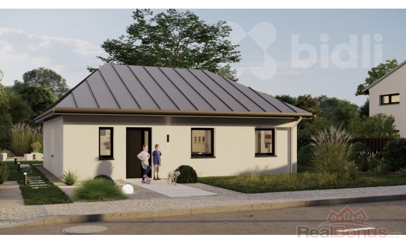 Srdcem domu je obývací pokoj spojený s jídelnou s přímým vstupem do kuchyně. Tento prostor je díky několika velkým oknům prosvětlený a vzdušný. Zároveň poskytuje přímé spojení s venkovní terasou a zahradou. V domě je dostatek úložného prostoru, kde využijete praktickou technickou místnost, nebo lze využít půdu, kam schováte například sezónní vybavení.