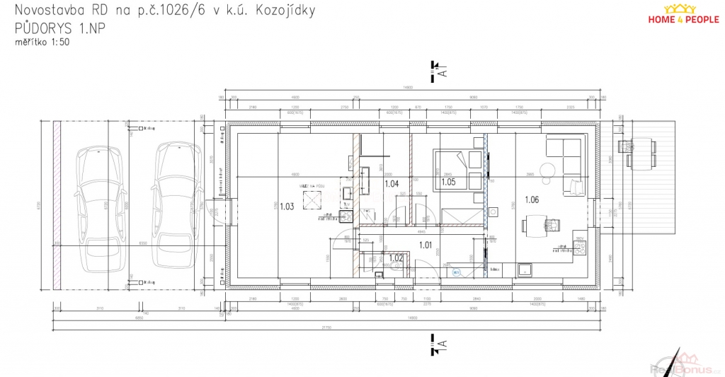 Cena včetně stavby na klíč, pozemku, odměny zprostředkovatele a DPH. , Zprostředkujeme Vám prodej výstavby s hotovým projektem na pozemku v obci Kozojídky okr. Hodonín. Na uvedený projekt domu je vydáno stavební povolení, takže stavbu můžeme zahájit do 14 dnů. Jedná se o zděnou stavbu o zastavěné ploše 100m o dispozici 3+kk s možností úpravy na 4+kk, kdy užitná plocha je 78,3 m. Stavba domu je navržena ve tvaru obdélníku o rozměrech 14,90 x 6,72 m + dle požadavků zrealizujeme také kryté parkovací stání o rozměru 6,85 x 6,72 m a ploše 13,50 m. K pozemku je zpevněná přístupová komunikace, veřejné osvětlení a inženýrské sítě. Na pozemku je připraven elektrický rozvaděč, který je již zaplacen a je součástí ceny. Pozemek je mírně svažitý na klidném místě obce a jeho délka je 40m a šíře 12,3m. Dle územního plánu je pozemek veden a schválen pro rodinné bydlení. Přízemní dům je ideální pro 4 člennou rodinu s nízkými provozními náklady. Uvedená cena je za pozemek, kompletní stavbu domu v provedení na klíč, projektové dokumentace, vyřízení stavebního povolení, základové desky až po kolaudaci. V uvedené ceně můžete počítat také s finálními povrchovými úpravami exteriéru i interiéru, a to včetně elektroinstalací, sanitárního vybavení s bateriemi, interiérovými dveřmi včetně obložek a vytápění je řešeno teplovodním podlahovým topením v kombinaci tepelného čerpadla se 180L zásobníkem na teplou vodu. Dle dohody změníme systém vytápění nebo vystavíme komín pro krbové kamna nebo pro využití krbové vložky. Kryté garážové stání spojené s domem nebo venkovní krytou či nekrytou terasu za příplatek. Pro náročnější klienty máme nabídku nadstandardního vybavení chytré domácnosti, klimatizaci, externí žaluzie, rolety, rekuperaci nebo fotovoltaiku. Doba výstavby cca 12-13 měsíců, kdy zahájit stavbu můžeme do 14 dnů. Smlouvy o dílo zašleme na vyžádání včetně položkového rozpočtu. V blízkosti je veškerá občanská vybavenost. Financování zajišťujeme a můžete také využití našich služeb, při prodeji Vaší nemovitosti. Doporučuji jednak prohlídku pozemku, tak některý z hotových domů, které máme k dispozici v okolí. Obec Kozojídky je vzdálena od Veselí nad Moravou 7km. V obci je mateřská školka, obchod a potřebné služby pro pohodové bydlení. Doporučuji. Ev. číslo: 31690. Energetický štítek: A (36 kWh/m2/rok).