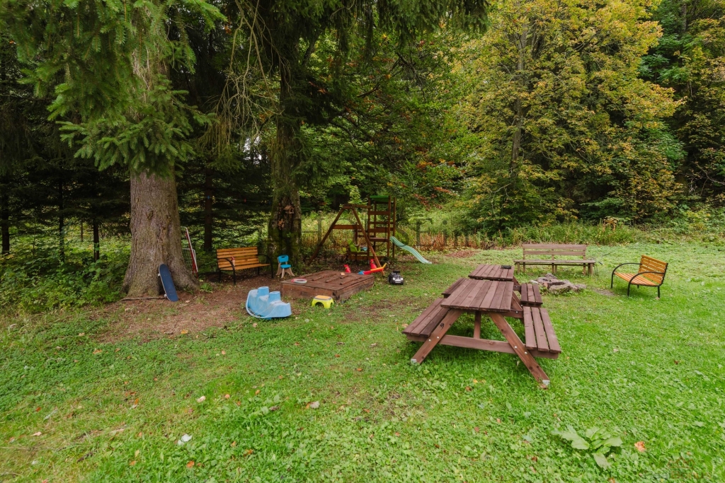 Apartmán se skládá z předsíně s velkou šatní skříní a úložnými prostory, prostorné koupelny se sprchovým koutem pro dva, dvěma umyvadly a závěsným WC, dále z plně vybavené kuchyně s jídelním stolem pro čtyři osoby, ložnice s velkou patrovou postelí (dole i nahoře rozměr 180x200 cm, celkem pro 4 dospělé osoby) a obývacího pokoje s rozkládací sedací soupravou vhodnou pro přespání dalších dvou osob. Součástí apartmánu je také nově nainstalovaná infrasauna pro 2 osoby, což výrazně zvyšuje komfort a atraktivitu pro hosty.