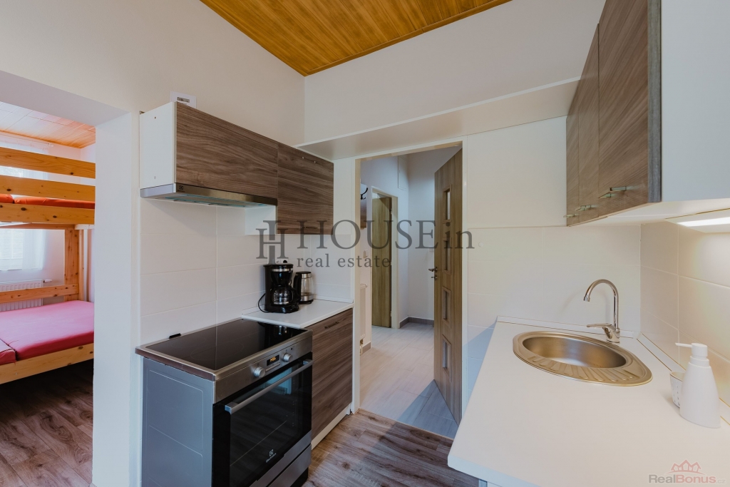 Nabízíme k prodeji pěkný, kompletně zrekonstruovaný a zařízený apartmán o dispozici 2+1 a podlahové ploše 41 m2, který se nachází v přízemí bytového domu na klidném místě u lesa v obci Kořenov, okres Jablonec nad Nisou. Apartmán je ideální volbou jak pro vlastní rekreaci, tak jako výhodná investice do krátkodobých pronájmů. Má výborné hodnocení na platformě Booking.com, a je možné převzít veškeré know-how.