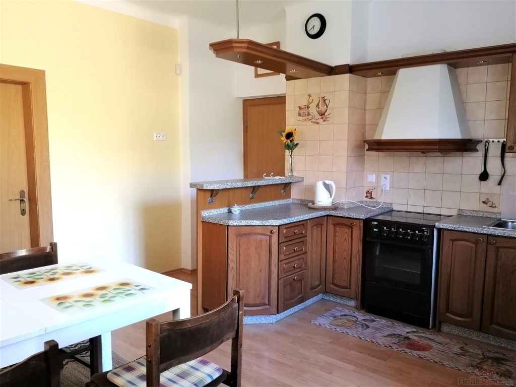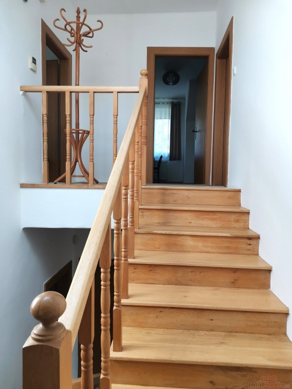 V přízemí domu se nachází prostorná kuchyně, obývací pokoj, ložnice, 1 koupelna s WC, 1 koupelna a 1 samostatné WC. Po vnitřním dřevěném schodišti se dostaneme do patra, kde jsou 2 pokoje, malá příležitostná kuchyňka, koupelna se sprchovým koutem a s WC.