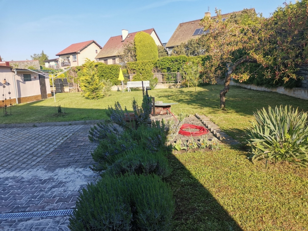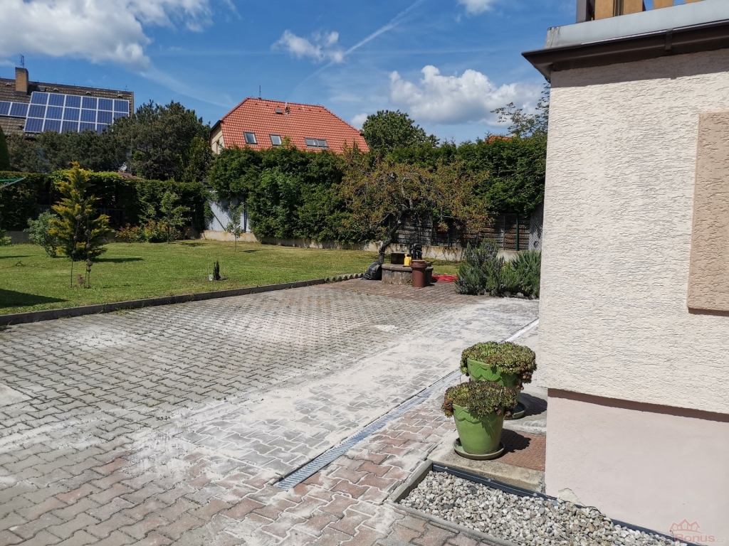 U domu je garáž a sklad na nářadí a zahradní techniku. K relaxaci slouží udržovaná zahrada. Vzhledem k výjimečně výhodnému umístění domu a krásné ulici plné vzrostlých stromů a travnatých ploch s minimálním provozem aut bude dům vyhovovat i náročnému nájemci.
