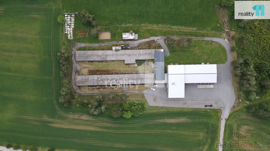 - Stavba na pozemku St. 201: bez čp/če, zemědělská stavba - novější montovaná hala, skladový prostor, užitná plocha 1330 m.