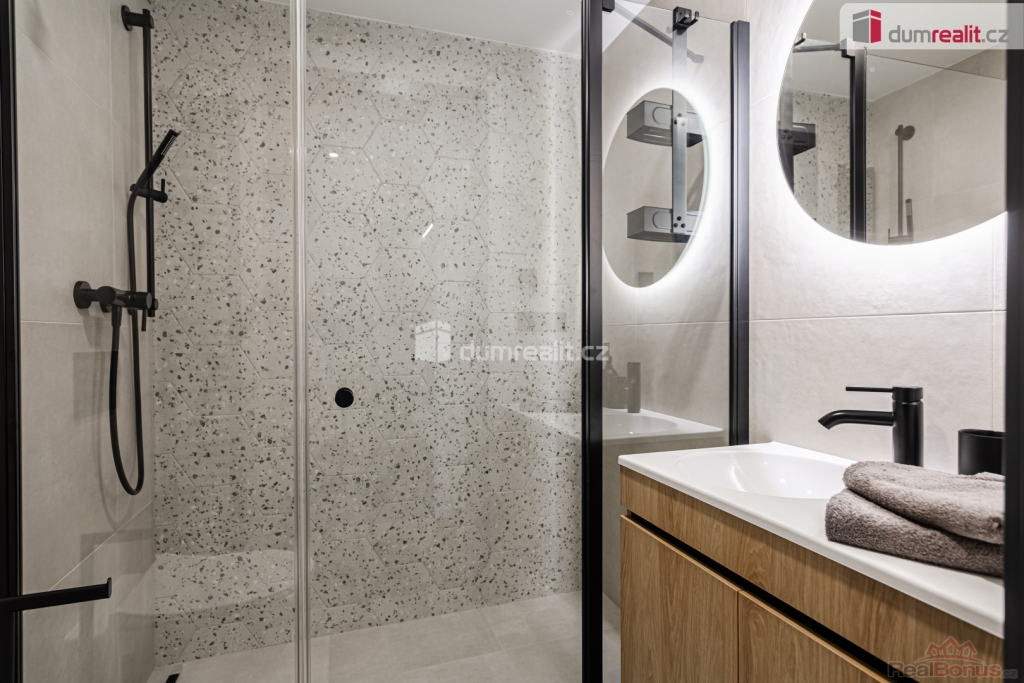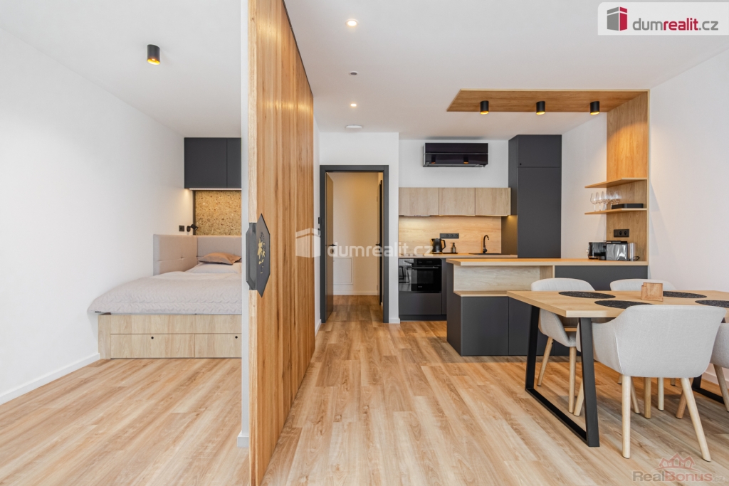 Cena vč. právních služeb a provize RK., Dumrealit.cz Vám zprostředkuje prodej prémiového horského apartmánu (bytové jednotky) o dispozici 2+kk v Abertamech v Krušných horách. Stylový apartmán ,,Třezalka" o celkové velikosti 44,4 m se nachází v novém bytovém domě 17 BYLIN, v 3. patře s výtahem. Dispozice apartmánu zahrnuje prostorný obývací pokoj s lodžií a kuchyňskou linkou na míru s vestavěnými spotřebiči, ložnici, chodbu, koupelnu se sprchovým koutem a WC. Apartmán je nově a exkluzivně zařízen, připraven k okamžitému nastěhování, bez jakýchkoliv dalších investic. Je vybaven systémem Loxone. K apartmánu náleží parkovací stání před domem, lyžárna se skřínkou pro lyžařské vybavení, vyhřívané sušáky na boty, kolárna se skříňkou s možností nabíjení baterií, prádelna se sušičkou a zahradní tábořiště ke společnému setkávání. Dům Sedmnácti Bylin má funkční spravované SVJ složené ze skvělých majitelů, nabízí nadstandardní zázemí vč. finské sauny a odpočinkové zóny, je situován na hraně náměstí a Krušnohorské magistrály. Upravené cyklostezky, turistické trasy nebo nedaleké lyžařské areály Plešivec, Boží Dar a Klínovec vám umožní bohaté celoroční sportovní vyžití. Městečko Abertamy ležící jen 15 km od Karlových Varů. Apartmán sousedí na patře s apartmánem ,,Šalvěj" a je zde možnost koupit oba tyto apartmány (možnost jednání o ceně). Tuto nemovitost lze hradit hypotečním úvěrem, který Vám rádi pomůžeme vyřídit v našem hypotečním centru. Nezmeškejte možnost vlastnit tento jedinečný apartmán! Kontaktujte nás pro více informací. Ev. číslo: 649966. Energetický štítek: A