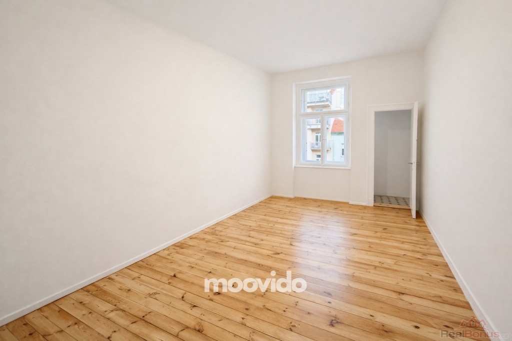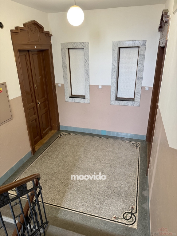 Byt se nachází ve 3. patře udržovaného cihlového domu. Byt je nezařízený, na podlahách jsou nově vybroušené parkety.