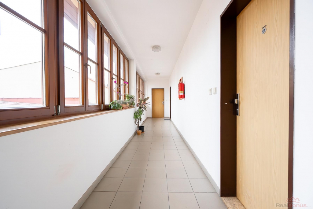 Velkým benefitem je možnost užívání společné zahrady ve vnitrobloku s bazénem a možnost přikoupení garáže přímo v bytovém domě.