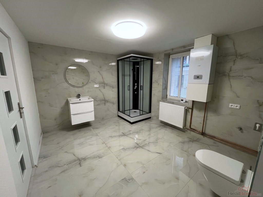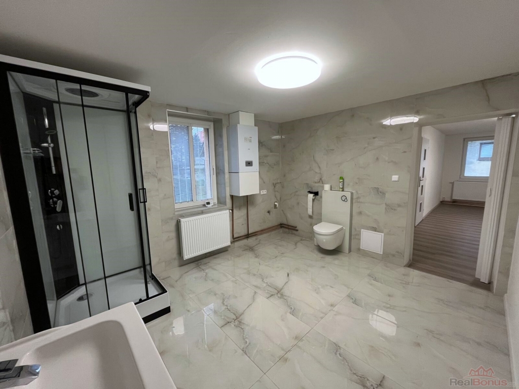 Pronájem bytu 2+kk po rekonstrukci, v klidné lokalitě v ul. U Družiny, k dispozici IHNED. Byt o výměře 75 m2 se nachází ve 2.NP zděného bytového domu po rekonstrukci. V bytové jednotce se nachází kuchyňská linka vybavená spotřebiči: sporák, digestoř, myčka, lednice. Velmi prostorná koupelna se sprchovým koutem a wc. V místnostech je plovoucí podlaha, v koupelně dlažba. Ve všech oknech jsou instalované žaluzie. Součástí bytu jsou 3 šatny/spíže. Možnost využití velké společné zahrady s altánem, bazénem, prostorem na grilování a zahradním domkem pro děti. Parkování na komunikaci před domem nebo za bránou na pozemku. V ceně nájmu nejsou zahrnuty poplatky za služby v výši 975,- Kč/os. (voda, společná elektřina, poplatek za revizi plyn. kotle, správa domu). Elektřinu a plyn si nájemník přepisuje na sebe. Vratná kauce ve výši 20.000,- Kč, provize RK ve výši 16.500,- Kč. ET-G. Bližší info u makléřky.