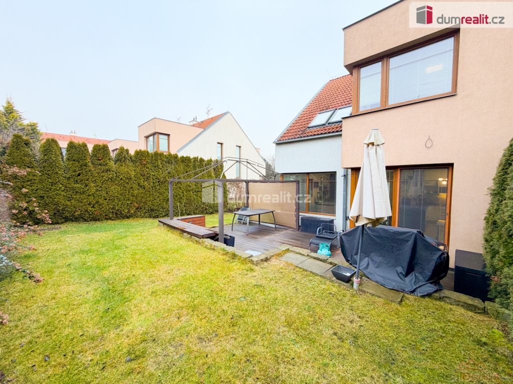 Užitná plocha domu činí 180 m a součástí je zahrada o velikosti 370 m s terasou, která nabízí ideální prostor pro relaxaci i rodinné aktivity.