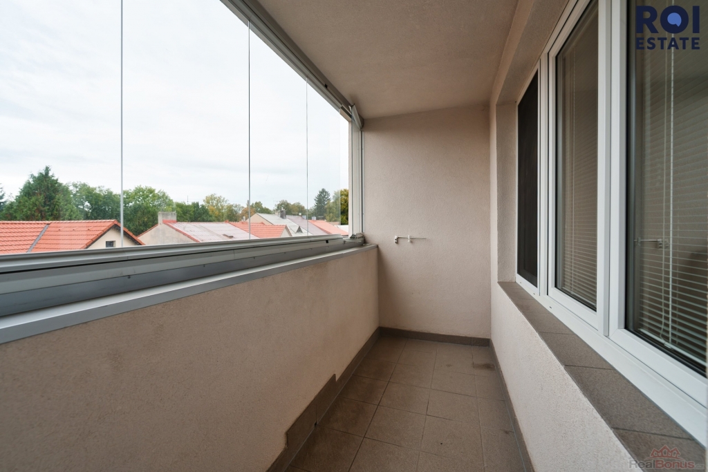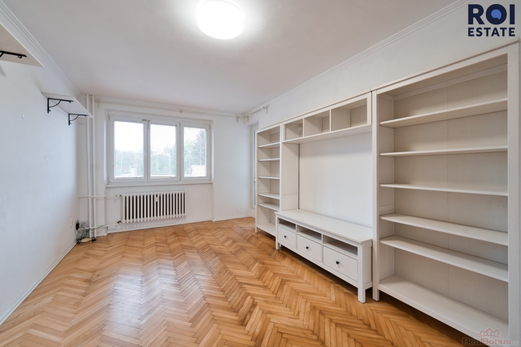 Dispozici tvoří plně vybavená kuchyň (myčka nádobí, trouba, plynová varná deska, lednice a jídelní sezení), obývací pokoj a dvě samostatné ložnice. Koupelna je vybavena sprchovým koutem, toaleta je samostatná. K bytu náleží zasklená lodžie a sklepní kóje. Parkování je možné pohodlně na ulici před domem.
