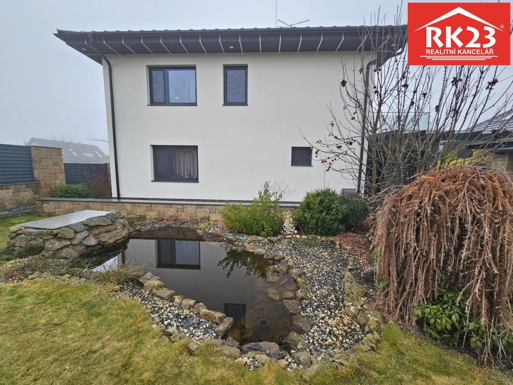 Prodej luxusního rodinného domu nacházejícího se v klidné části obce Velká Hleďsebe, v ulici Ke Knížáku, který byl dokončen v roce v 2019 a je o zastavěné ploše 181 m2. Dům nabízí moderní bydlení s důrazem na komfort a nízké provozní náklady (energetická třída náročnosti A). Dům má dvě nadzemní podlaží, kde v přízemí je dominantou prostorný obývací pokoj propojený se vkusně zabudovanou kuchyňskou linkou a jídelnou. Dále se zde nachází ložnice, koupelna se sprchovým koutem, šatna, technická místnost a garáž pro dvě vozidla. V patře jsou umístěny další 3 pokoje, pracovna, šatna a prostorná koupelna s vanou i sprchovým koutem. Zahrada je mírně svažitá, osázená okrasnými keři a ovocnými stromy. Nabízí příjemné posezení pro grilování, soukromí a v zadní části pozemku je umístěný samostatný zahradní dům. Pro více informací a nebo sjednání prohlídky kontaktujte realitního makléře. Rádi Vám také pomůžeme zajistit optimální financování této exkluzivní nemovitosti.