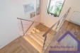 Interiér domu je promyšlený do detailu. Vestavěný nábytek na míru, navržený architektem, nabízí velkorysé množství úložných prostor a je součástí nájmu. Obývací pokoj zůstává nezařízený - nájemce si může přizpůsobit podle sebe.