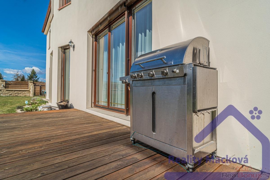 Technické zázemí domu odpovídá modernímu standardu vytápění elektrokotlem, ohřev vody elektrickým bojlerem, zabezpečovací systém včetně zahradního domku, venkovní elektrické žaluzie na většině oken. Vjezdová brána na dálkové ovládání, parkování pro 34 vozy, vstup na čip a videotelefon s přenosem obrazu i zvuku do mobilu přinášejí každodenní komfort i pocit bezpečí.
