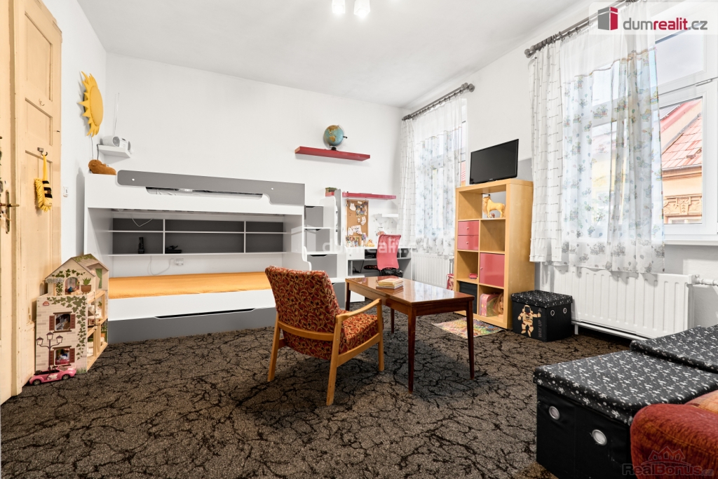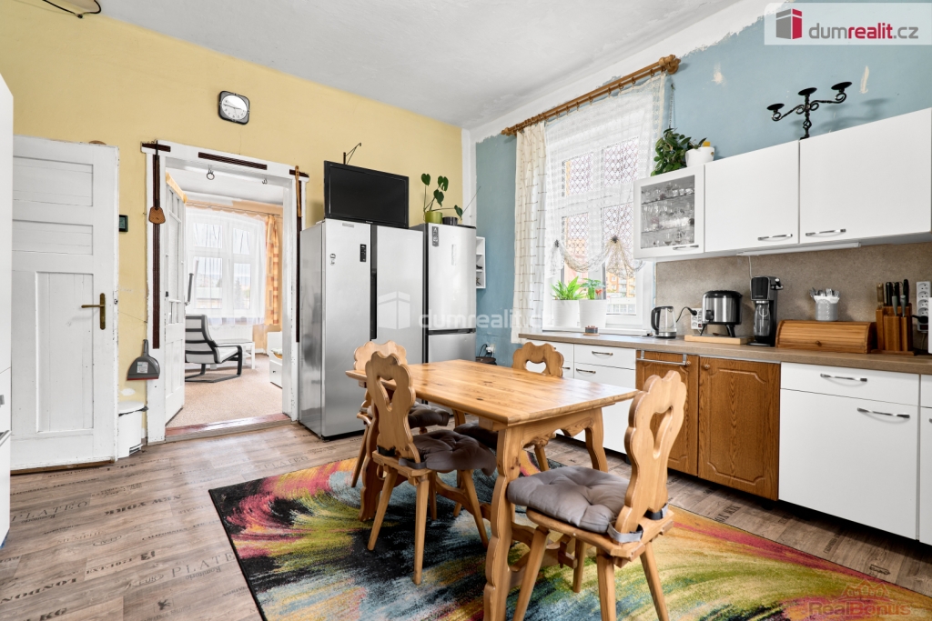 vč. právního servisu a provize RK, Nabízíme k prodeji podsklepený dům se 3 byty v centru Kadaně. V přízemí je byt 2+1 v původním stavu. Tento prostor je vhodný i pro podnikatelské účely. v 1. patře je byt 2+1 po celkové rekonstrukci a 2. patro je připraveno na vybudování bytu 3+KK, nebo dvou menších bytů. V celém domě je nová elektroinstalace, rozvody vody a odpadů byly vyměněny před cca 16 lety, střecha před 18 lety. Dále je dům vybaven rozvody WIFI a kabelové TV. Každý byt má samostatné jističe a elektroměr. Dům je vytápěn kotlem na tuhá paliva, ohřev vody zajišťuje el. bojler. Na zahradě je zděný zahradní domek a dřevěná pergola s udírnou. Vedle domu je parkovací místo pro 2 auta. Možnost financování hypotékou, kterou Vám rádi vyřídíme. Vzhledem k tomu, že před zadáním do inzerce nebyl vyhotoven PENB, je tato nemovitost v souladu s platným zákonem zařazena do energetické třídy G. Ev. číslo: 652829. Energetický štítek: G