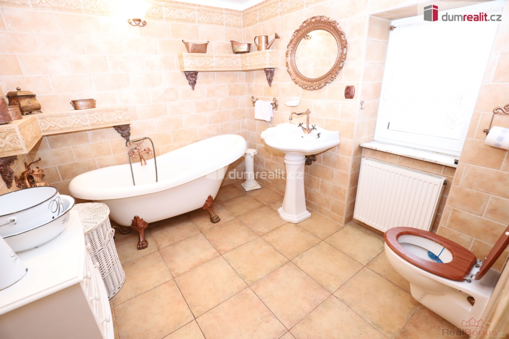 , Dumrealit.cz Vám zprostředkuje koupi pěkného rodinného domu s garáží, parkovacím místem, sklepem, terasou a krásnou zahradou v Dolním Rychnově. Kvalitní cihlový dům o třech podlažích obklopuje pozemek o celkové rozloze 686 m a má celkovou užitnou vnitřní plochu cca 250 m, 21 m tvoří zahradní samostatný domek se zastřešeným posezením. Dům nabízí dispozici 5+1 s tím, že v přízemí se nachází prostorný obývací pokoj, kuchyně, ložnice s komorou, další menší předpokoj mezi ložnicí a obývákem, předsíň, koupelna s toaletou, dále je zde předsíň a chodba se schodištěm. V prvním patře je další koupelna s toaletou a sprchovým koutem, šatna, velká ložnice a další pokoj odkud je výstup na terasu. Dům je podsklepený, sklep je suchý čistý, je zde umístěný ............. kotel. Pozemek i celkové rozloze 686 m je ve tvaru delšího obdélníku a skýtá soukromí zahrady za domem dále od ulice. Pěstěná udržovaná zahrada se zámkovou dlažbou skrývá zahradní domek, který je velmi útulný a je vybavený kuchyňskou linkou, sedacím nábytkem a nezávislým topením - kamny na pevný otop. Praktická je venkovní toaleta umístěná za garáží. V rámci postupné rekonstrukce se v domě dokončila nová elektroinstalace, vodoinstalace, odpady, rozvody topení, střecha, fasáda. Nové jsou také podlahy, omítky, štuky, plastová okna, koupelna a kuchyně. Budova je zateplená ..............i ze ............... Cihlový dům vytápí ................ kotel se zásobníkem na teplou vodu, komín byl ........... vyvložkovaný. Dům je napojen na všechny inženýrské sítě včetně kanalizace, vody, elektřiny a plynu. Co se parkování týče, je k dispozici velká garáž, další dvě parkovací místa jsou před garáží v dlouhém vjezdu a před domem. Dům se nachází 5 minut jízdy od Sokolova, kde je veškerá občanská vybavenost a dostatek pracovních příležitostí, přesto i v Dolním Rychnově je obecní úřad, pošta, potraviny, restaurace, samozřejmě je zde zastávka MHD. Nemovitost je umístěna v příjemné ulici a nabízí kombinaci moderního bydlení a klidného prostředí, je zde dostatek úložného prostoru a klid pro každého člena rodiny. Cena zahrnuje veškeré právní služby a provizi RK. V případě zájmu Vám rádi doporučíme naše prověřené hypoteční poradce. Ev. číslo: 652838. Energetický štítek: G (30 kWh/m2/rok).