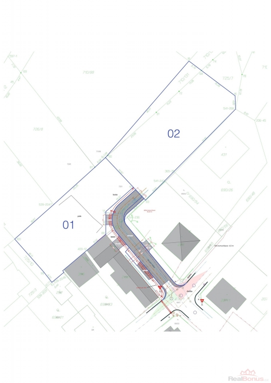 Prodávaný pozemek má plochu 804 m2 + 105 m2, celkem 909 m2. Pozemek prodáváme aktuálně bez přípojek a inženýrských sítí. Ty jsou ve vzdálenosti cca 32m od hranice pozemku.