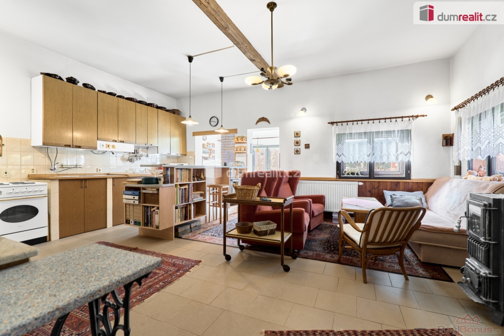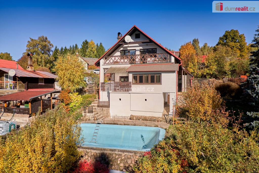 V zahradě naleznete bazén, kde se můžete v horkých letních dnech osvěžit. Samotný dům byl dostavěn v roce 2001 a zdá se, že ho čas šetřil. Jedná se o částečně podsklepený dvoupodlažní objekt určený k trvalému obývání. Přízemí nabízí prostornou halu s kuchyňským koutem, jídelnou a spížemi, hostinský pokoj a sociální zařízení. V patře najdete dvě prostorné ložnice s výstupem na terasu, obývací pokoj, kuchyň se spíží a další sociální zařízení. K dispozici je také podkroví, které lze dále využít podle vlastních potřeb. Dům má dva samostatné vchody, dispozičně tedy může sloužit jako vícegenerační.