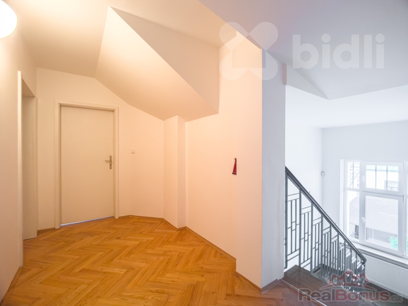 Ve výhradním zastoupení nabízím k dlouhodobému pronájmu samostatný rodinný dům, o výměře 242 m2, který je svým uspořádáním a polohou ideální pro podnikatelské využití - kanceláře, ordinace, služby či sídlo firmy se zázemím a skladovacími prostory v suterénu domu a ve stavbách na zahradě (zahradní domek a garáž). V přízemí domu je vstupní hala, ze které se jde do jednotlivých místností, komory a samostatné toalety. První a druhá místnost (má kachlová kamna) je propojena dveřmi. Do třetí místnosti (dříve kuchyňka) je vstup jen z chodby. Za touto místností je koupelna s vanou a toaletou. V chodbě je schodiště do suterénu a do prvního patra, kde je další komora, dvě samostatné místnosti a koupelna s vanou, sprchovým koutem a toaletou. V celém domě jsou rozvody internetu a v patře je příprava pro projektor. V suterénu domu jsou dvě místnosti vhodné k využítí jako skladovací prostory. Na zahradě je zahradní domek a garáž, oba prostory byly využívány pro skladování. Celý dům je po kompletní rekonstrukci, v místnostech jsou renovované parkety, na chodbě, v koupelnách a toaletě je dlažba. Dům je vytápěn plynovým kotlem. Celý dům má zabezpečení a klimatizaci. Parkování je možno na pozemku vedle domu (cca 3 auta) a před domem na ulici. Dům je umístěn v žádané a klidné lokalitě v zástavbě rodinných domů v těsné blízkosti kladenského divadla a autobusového nádraží (cca 5 minut pěšky) s výbornou dopravní dostupností a veškerou občanskou vybaveností (obchody, pošta, restaurace, OC Centrál, úřady, nemocnice...). K dispozici je kancelářský nábytek a kuchyňka. Tento dům je ideální volbou, pokud hledáte reprezentativní prostory pro svou firmu či podnikání (poradenská činnost, ordinace, služby...). Měsíční nájemné ve výši 49.000 Kč, měsíční zálohy na energie (elektřina 6.800 Kč, plyn 5.300 Kč, voda 700 Kč), vratná kauce 98.000 Kč, provize 59.290 Kč. Přijďte se osobně přesvědčit, že tento dům je ideálním místem pro Vaše podnikání. Neváhejte mě kontaktovat pro domluvení prohlídky.