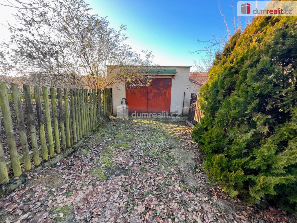 Za domem se nachází garáž a plocha vhodná k parkování. Vedle domu je oplocená zahrada. Celková plocha pozemku činí 465 m.
