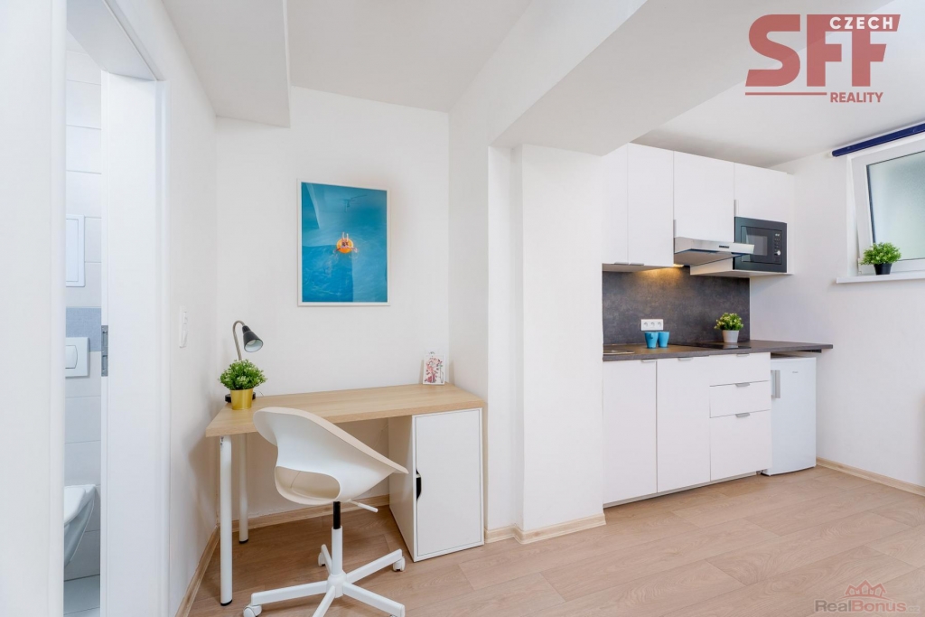 Bez provize! Od 19.12.2025 ke střednědobému (minimum 3 měsíce) nebo dlouhodobému pronájmu nabízíme nové, moderní, plně zařízené a servisované studio (č. 43003) na adrese Čerčanská, Praha 4 jen 2 minuty pěšky od stanice metra Kačerov (červená linka C) s výbornou dostupností do centra Prahy.