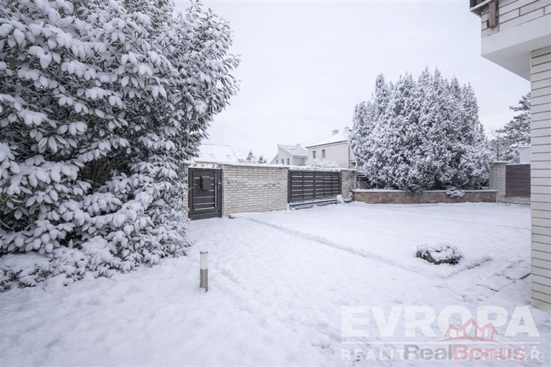 Čistá obytná plocha 196,05 m2, (plocha bez balkonů, chodeb, podest, schodišť, suterénu, dvojgaráže, terasy). Dále 2 balkony 17,5 m2, terasa 27,5 m2. Ochranné pásmo za pozemkem (40 m na každou stranu viz foto).