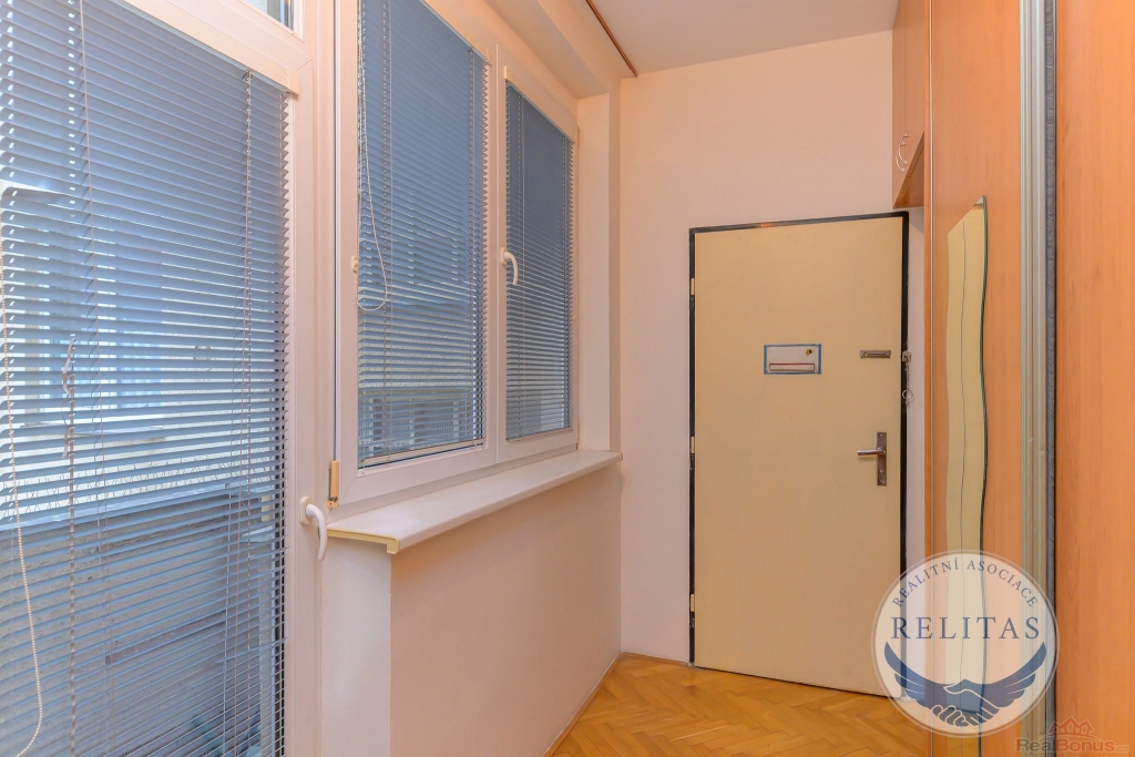 Interiér je ve velmi dobrém stavu a nabízí kompletní vybavení spotřebiči. K dispozici je kuchyňská linka s lednicí, myčkou, elektrickou troubou a sklokeramickou deskou, součástí vybavení je také pračka. Dispozice bytu zahrnuje praktické samostatné WC oddělené od koupelny. Pro maximální komfort v letních měsících je ložnice vybavena klimatizací. Vytápění a ohřev teplé vody jsou řešeny centrálně.