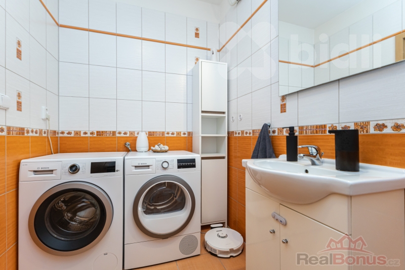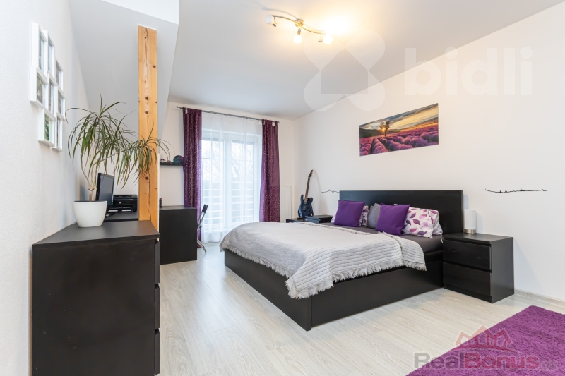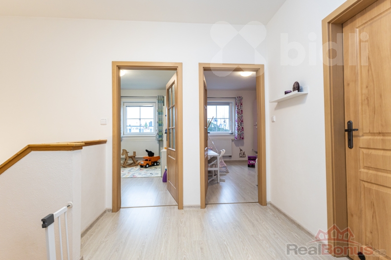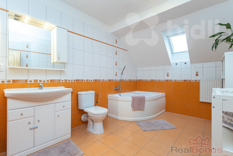 tři samostatné ložnice, koupelna s rohovou vanou, technická místnost s plynovým kotlem