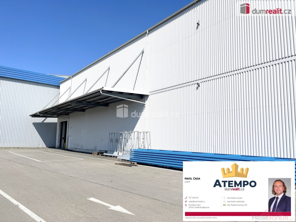 možnost pronájmu včetně kompletních logistických a personálních služeb s vedením sklad. hospodářství, Dumrealit.cz Vám zprostředkuje pronájem skladové haly s regálovými systémy s kapacitou 2.500 ks paletových míst o celkové výměře 2.000m s bezbariérovým přístupem, možností vykládek a nakládek kamionových souprav v ulici Pekárenská, České Budějovice. Prostory se nachází na strategickém místě ve vzdálenosti 5km od sjezdu z dálnice D3. Jedná se o netemperovaný skladovací prostor. Součástí pronájmu je veškeré vybavení regálovými systémy a případné další úpravy pronajímaného prostoru jsou možné po dohodě s majitelem areálu. Možno nabídnout k pronájmu i s nabídkou kompletních logistických služeb včetně personálu a vedení skladového hospodářství s pravidelným denním reportem. Dále jsou již v ceně pronájmu 4 parkovací místa pro osobní automobily s možností rozšíření o další místa při ceně 150,- Kč/auto/měsíc. Energie jsou fakturovány dle skutečné spotřeby. NELZE skladovat hořlaviny a chemické látky. V místě pronájmu lze zřídit sídlo firmy. Ideální místo připravené pro centralizované rozšíření působení a budování svého jména. Více informací Vám poskytne realitní makléř Pavel Čada z realitní kanceláře A TEMPO fungující pod ochrannou známkou dumrealit.cz. Zajistíme Vám financování a veškerý právní servis. Ev. číslo: 650775. Energetický štítek: G