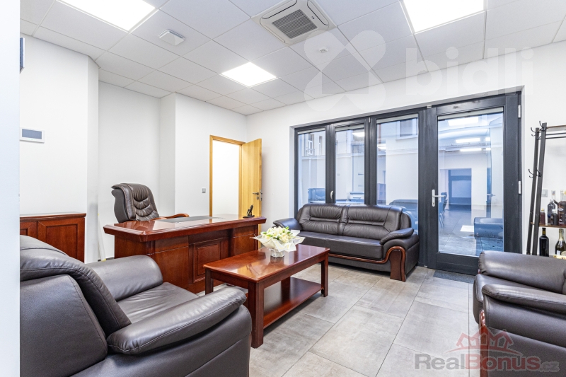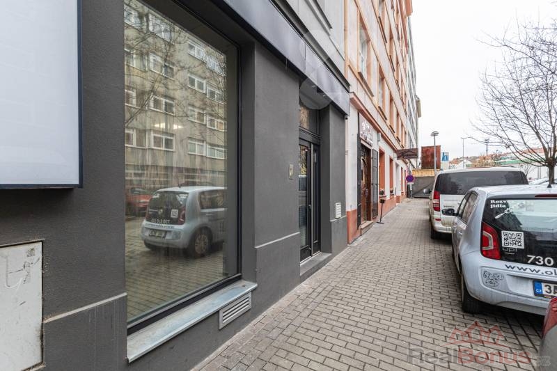 Prostor o výměře 94 m2 je řešen jako tři na sebe navazující (průchozí) kancelářské místnosti, což umožňuje plynulý provoz, variabilní uspořádání a efektivní využití plochy. Jednotka je vhodná pro kanceláře, showroom, klientské centrum nebo obchodní provoz. Přímý kontakt s ulicí prostřednictvím výlohy a příprava na podsvícené reklamní označení na fasádě zajišťují vysokou viditelnost a silný obchodní potenciál.