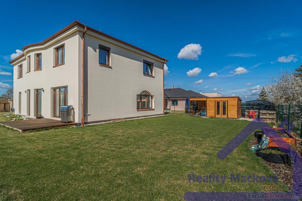 Dům je vybaven elektrokotlem, bojlerem, venkovními žaluziemi, zabezpečením obou pater i zahradního domku, elektrickou vjezdovou bránou a videotelefonem s přenosem obrazu i zvuku do mobilního telefonu. Samozřejmostí je parkování pro tři automobily přímo na pozemku a zahrada připravená k okamžitému užívání.