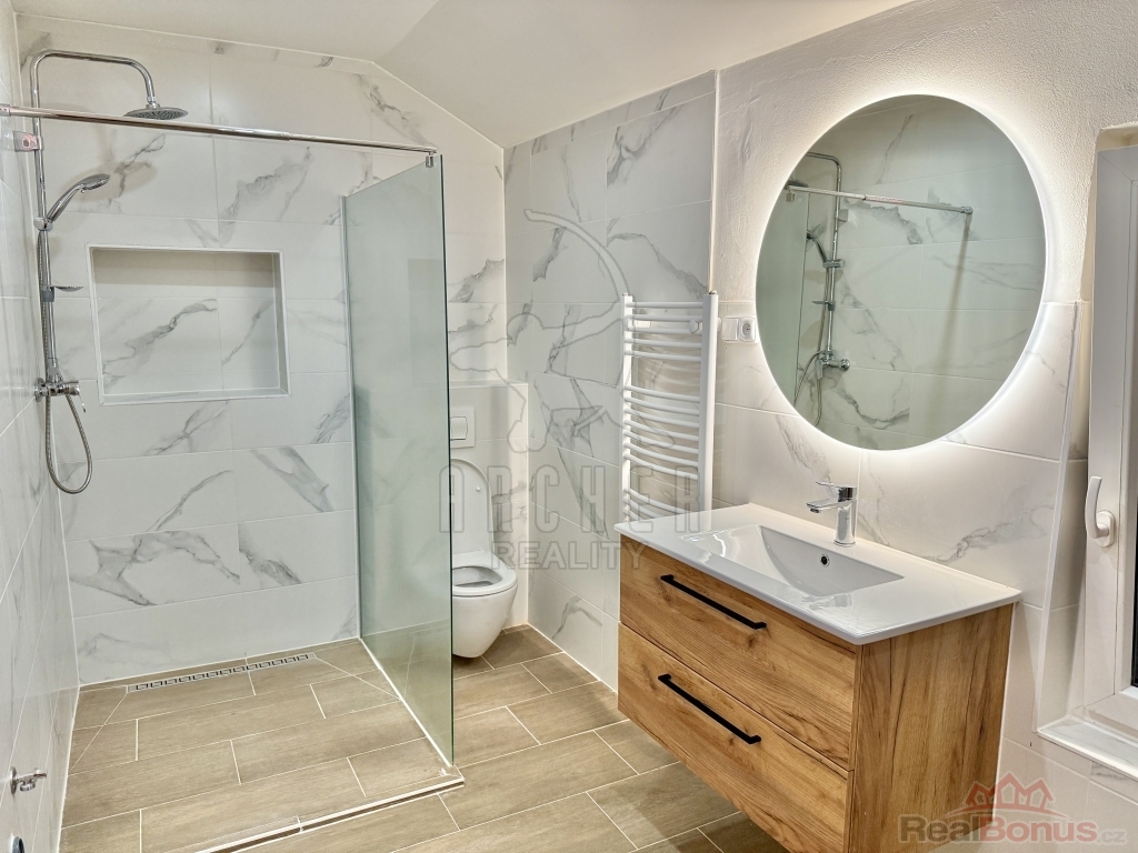 - moderní koupelnu s vanou a vyhřívanou podlahou,