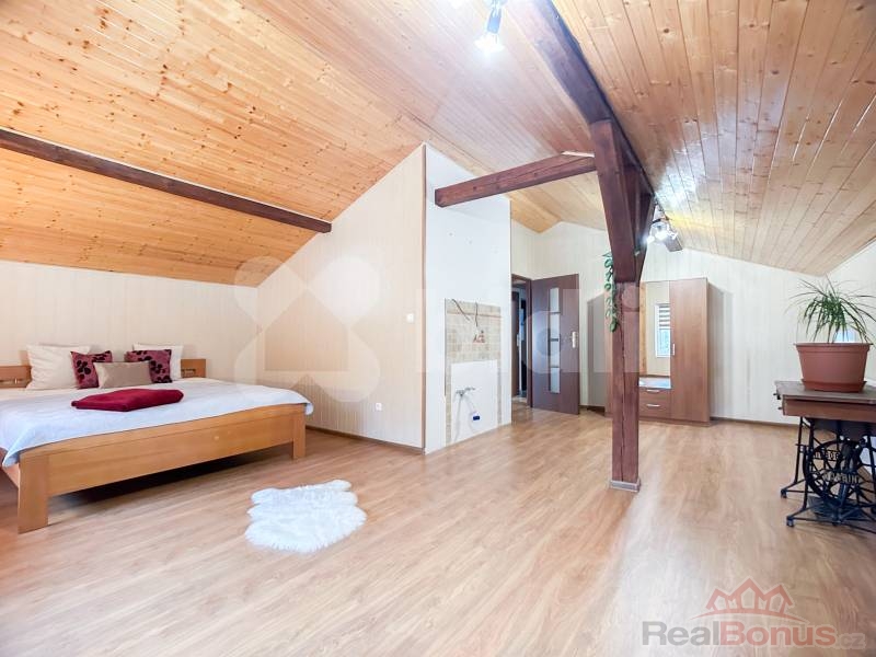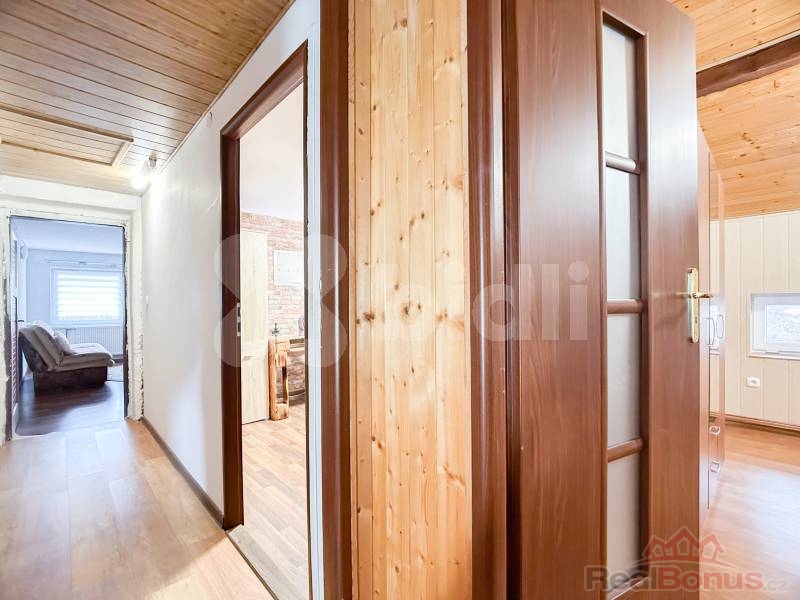 1. Patro: v patře se nachází 3 obytné pokoje, koupelna s wc a sprchovým koutem a 2 menší místnosti vhodné např. pro vytvoření šatny, pracovny nebo pro uložení věcí.