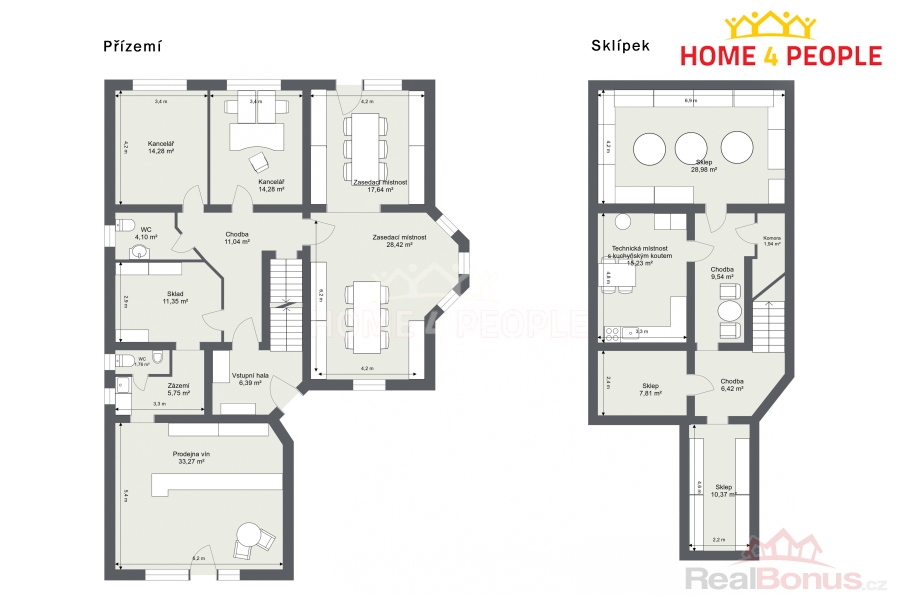 V podzemním podlaží najdete prostorné sklady, budete mít dostatek místa na skladování produktů a materiálů bez nutnosti využívání drahých externích skladových prostor. Parkování přímo na pozemku.