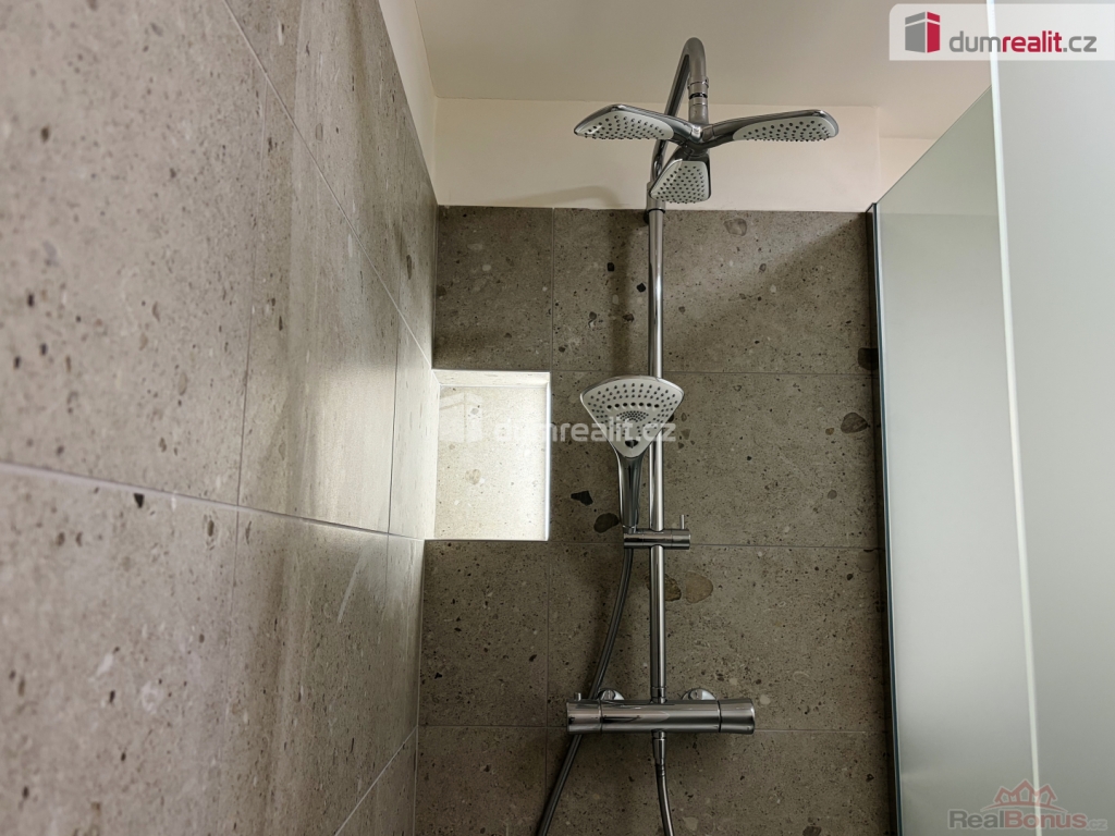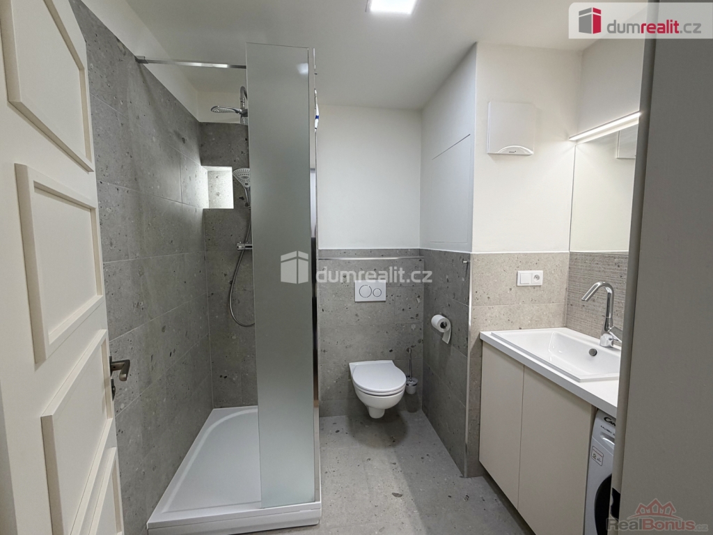 - koupelna se sprchovým koutem s hlavovou a ruční hlavicí, pračka se sušičkou, toaleta s diskrétní odtahem přímo z klozetové mísy.
