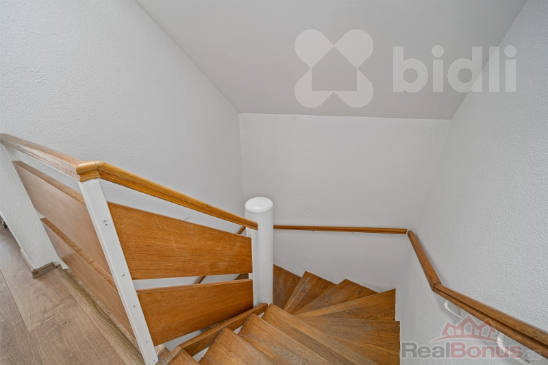 Součástí nemovitosti je dále rozsáhlé zázemí pro bydlení v horních patrech domu. V 1. patře se nachází obytná část s kuchyní propojenou s prostorným obývacím pokojem,. Se vstupem na terasou o velikosti cca 58 m2, ideální pro odpočinek a letní grilování. Dále se zde nachází technická místnost a wc.
