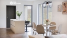 1.PP: hala (11,2 m2), obývací pokoj s kuchyní (44,1 m2), pracovna (8,4 m2), terasa (35,5 m2), koupelna s WC (5,4 m2), prádelna (6,6 m2), technická místnost (5,0 m2)